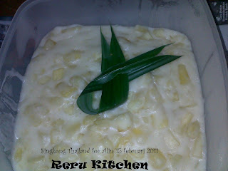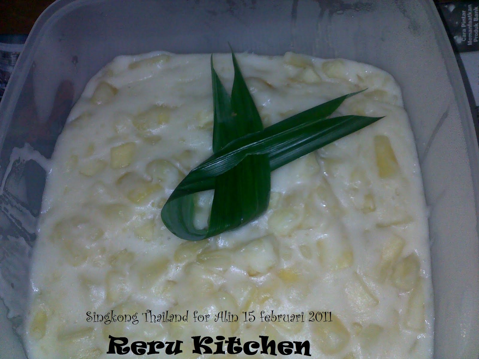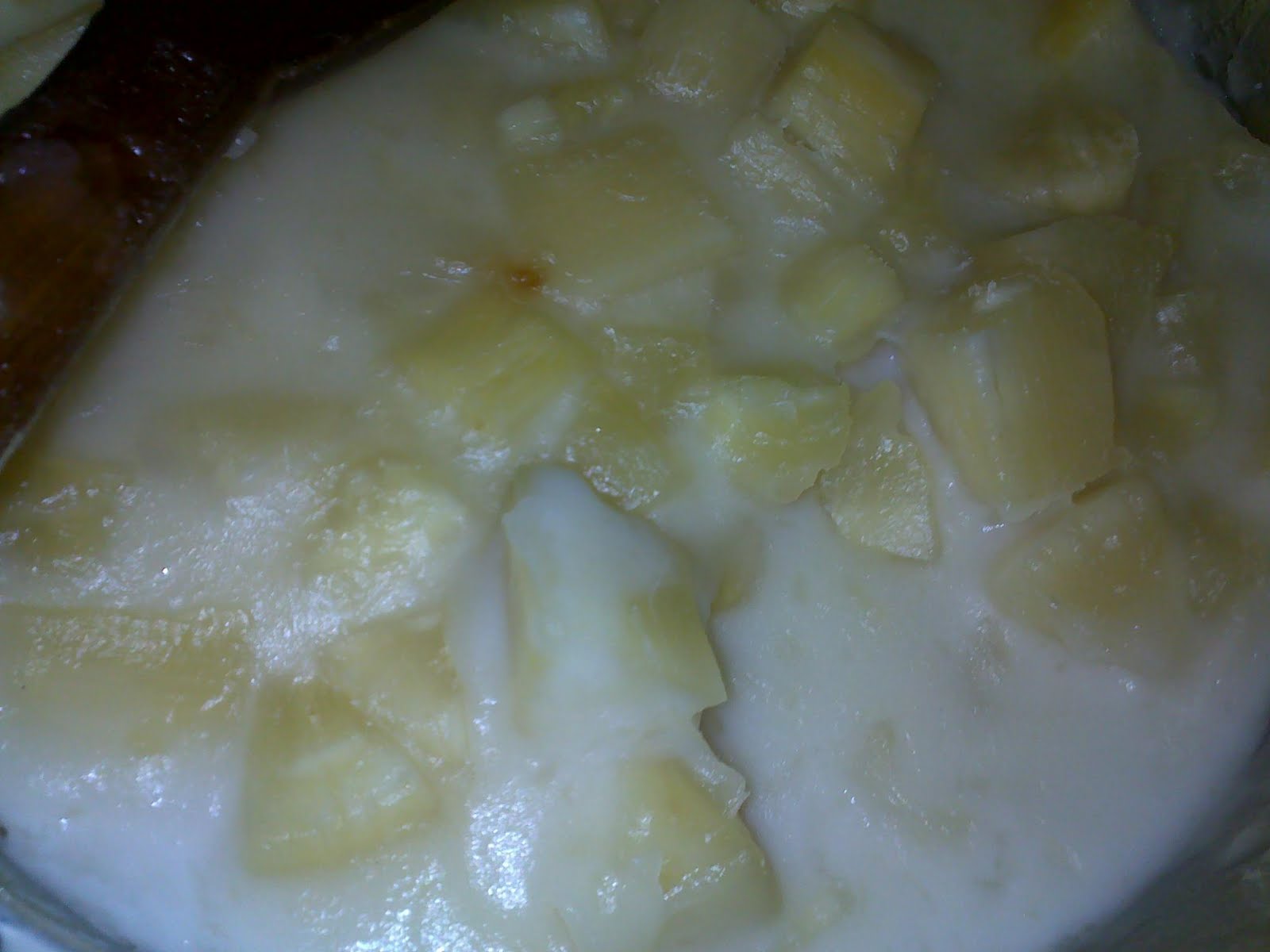 Ini singkong yang sudah empuk dan manis, direbus dengan santan kental.